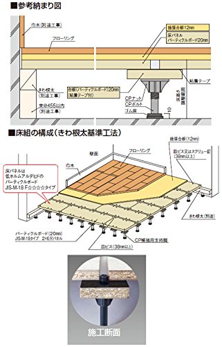 ※床パネルと支持脚の固定はフレキ付皿ビス(3.8×38mm以上又はパーチ25mm厚の場合は41mm以上)にて固定してください。