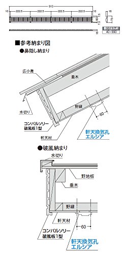フクビ化学 軒天換気孔 エルシア 網無 75×910mm ブラック 1箱20個価格 NESBK