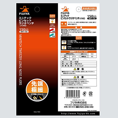 フジ矢 ピンセットラジオペンチ 極細仕様で精密作業に最適 (バネ付・ギザ無) 150mm MP7-150
