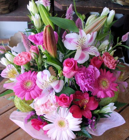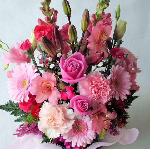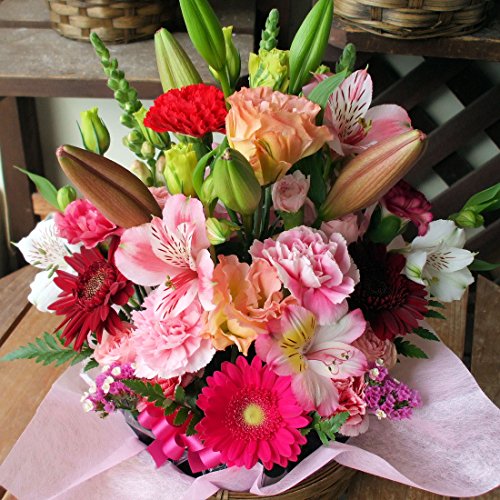 季節のお花おまかせアレンジメントO(ピンク系)「誕生日」「お祝い」「花の産地千葉県館山から」