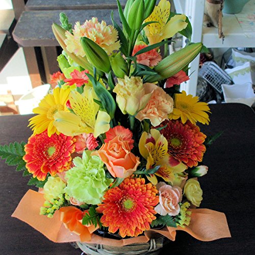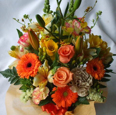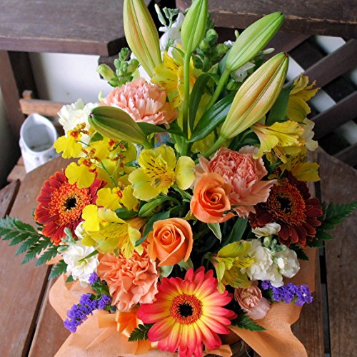 季節のお花おまかせアレンジメントO(オレンジ系)「誕生日」「お祝い」「花の産地千葉県館山から」