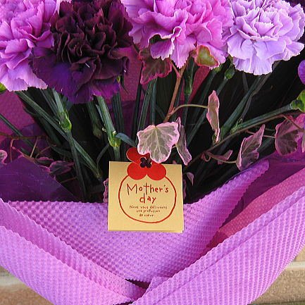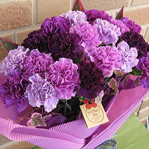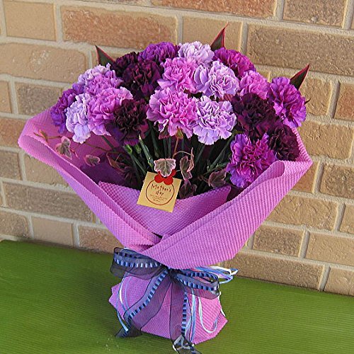 カーネーションって、こんなにキレイでこんなにオシャレ!! シック&ゴージャスな紫色のカーネーション・ムーンダスト 全4色各5本ずつmix計20本とドラセナ・コルディリネを ブライダルブーケ風に束ねた大人の雰囲気の花束は、 母の日のプレゼントにピッタリ!! サイズ:高さ=約55~60cm、幅=約35~40cm程度 ※掲載画像は1例です。 お花の形状・サイズ・開花具合には、個体差がございます。 予めご了承頂きますようお願い致します。 ◆商品のお届け期間:5月11日(金)~13日(日)のいずれか。 ※超繁忙期につき、お届け日の指定はご遠慮頂いております。 ◆送料無料(一部地域を除く) ※北海道・中国地方・四国地方・九州地方(離島は除く)は商品1点につき、一律540円(税込み)となります。 ◆お花を長くお楽しみ頂く為の「切花栄養剤」付き ◆お花を長くお楽しみ頂く為の「お手入れのコツ」付き ◆感謝の気持ちを伝える「メッセージカード」付き ◆持ち運びに便利なピッタリサイズの「キャリーバッグ」付き ◆「品質保証」万一の輸送中の破損等、商品の品質に問題があった場合は、商品到着から2日以内にご連絡を頂きましたら、速やかに代品をご用意させて頂きます。