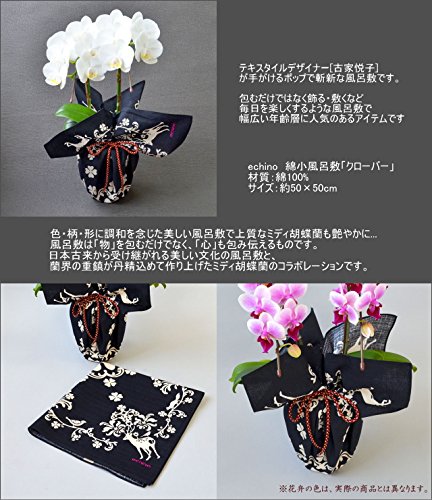 - サイズ:胡蝶蘭の高さ:約40~50cm ブランド風呂敷:echino「クローバー」 50×50