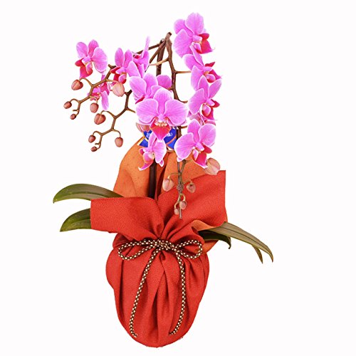 ミディ胡蝶蘭 1本立ち ピンク系 4号鉢 風呂敷ラッピング 朱/金茶