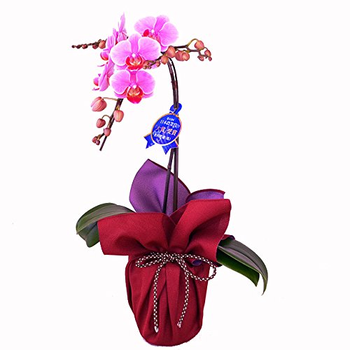 ミディ胡蝶蘭 1本立ち ピンク系 4号鉢 風呂敷ラッピング 朱/鳩羽