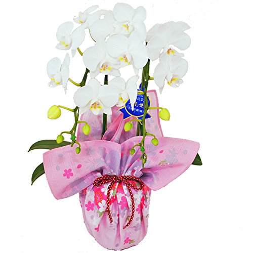 特選 ミディ胡蝶蘭 2本立ち 白色 アマビリス 4号陶器鉢 ブランド風呂敷ラッピング 綿小風呂敷 約50cm さくらの輪 ピンク