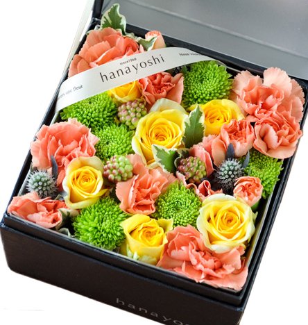 花由 ボックスフラワー hana cube 黒箱 【生花】 イエローxオレンジ系