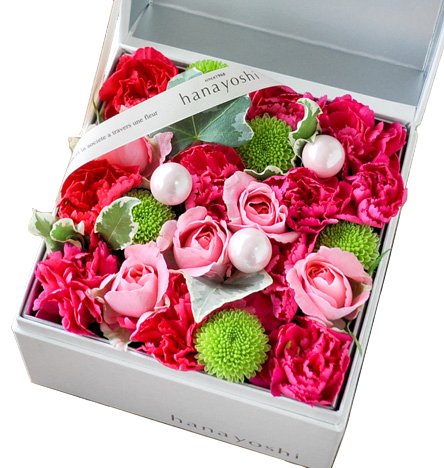 花由 ボックスフラワー hana cube 白箱 【生花】 ピンク系