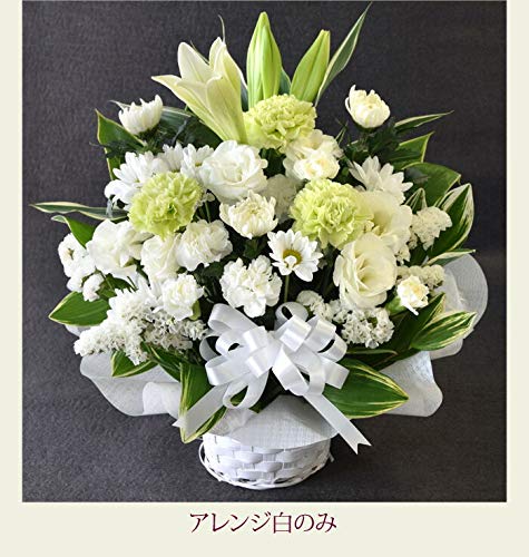 - 「お供えのお花」を、百合と季節のお花でお作りいたします。生花アレンジメントは、箱から出したらすぐに飾れるので手間があまりかかりません。一般的な作法に沿ってお作りいたしますが、地域や風習により異なる場合がございますので、その場合は事前にご相談くださいませ。通夜、葬儀、儀式等で葬祭場へのお届けは、会場によってはお受け取りできない場合がございます。事前にご確認ください。亡くなられてお日にちの浅い場合は、宗派や地域を問わない白いお花でまとめたアレンジをおすすめしています。お日にちが経っている場合は、個人のお好きな花色をプラスしたり、地味になりすぎないように、他のカラーを混ぜたお花を贈る場合が多くなっています。