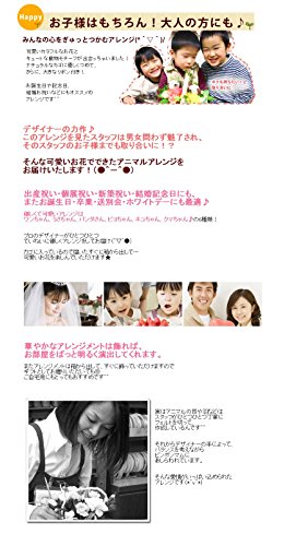 - 可愛いカラフルなお花とキュートな動物モチーフが出会いました。ナチュラルなカゴに優しくつめて、さらに大きなリボン付きのかわいいフラワーアレンジメントです。アレンジメントは箱から出して、すぐに飾っていただけます。お誕生日プレゼントや結婚祝いや記念日・退職祝いなどの各種お祝い、お見舞いなどに人気です。小さなお子様向けはもちろん、大人の方へのギフトとしてもご利用いただいています。ご自宅用にもおすすめです。