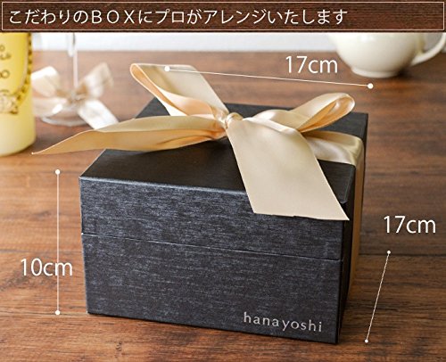 - 【サイズ】約:横17×奥行17×高さ10cm 【内容】生花アレンジ:季節の花各種/グリーン/花由オリジナルBOX/吸水性スポンジ/リボン/ご希望の方にメッセージカード、手提げ袋/お取扱説明書