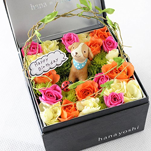 花由 ボックスフラワー hana cube 黒箱 【生花】 アニマルver わんこ