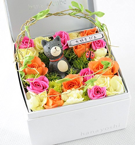 花由 ボックスフラワー hana cube 白箱 生花 アニマルver にゃんこ