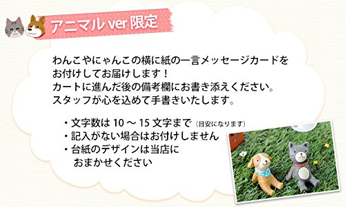 - 箱の中にお花を入れているので、持ち運び時にかさばりません。また、電車などの移動でも、手荷物感覚で運べますので、とても楽です。アニマルverは、わんこやにゃんこの横の紙に一言メッセージをお付けしてお届けします。10~15文字でご指定ください。メッセージはギフトの設定のメッセージ欄にてご指定下さい。