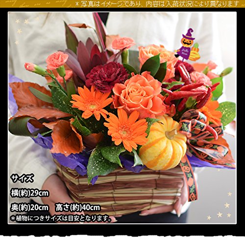 - 【サイズ】横(約)29cm× 奥(約)20cm ×高さ(約)40cm(※植物につき高さは目安になります)【内容】季節のお花各種/グリーン/ハロウィンピック(デザインは当店におまかせ下さい)/ハロウィンリボン(デザインは当店におまかせ下さい)/●ご希望のお客様には手提げバッグ *入荷状況により資材が変わる場合がございます メッセージをご希望のお客様はお客様ご記入欄にメッセージをお書き添えください。