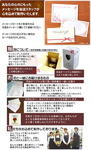 - ●ご不在の場合の保管期間は、お届け日を含めて3日間とさせていただきます。先様と連絡がとれず、ご不在のため期間中に再配達ができない場合も返品・交換を承ることはできません。また生花・植物につき返金もいたしかねますので、予めご了承ください。●【重要】福島県、熊本県の一部でお届けできない地域がございます。【熊本県】上益城郡(益城町)および阿蘇郡(南阿蘇村・西原村) 【福島県】相馬郡 飯舘村 長泥 全域 ※その他にもお届けできない地域がございます。事前にお受け取り可能かどうかのご確認をお願い申し上げます。●ご不明な点は、お電話にてお気軽にお問い合わせ下さい。