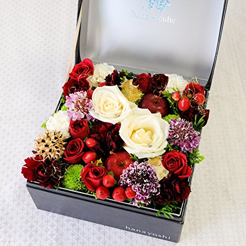 花由 ボックスフラワー hana cube◆グランデ(大)◆黒箱 ノエル (フラワーギフト クリスマスプレゼント 誕生日プレゼント 女性 結婚祝い お祝い 生花)
