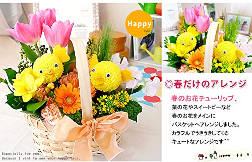 - ◆商品詳細 生花アレンジ:ピンポンマム/チューリップ/ガーベラ/菜の花/スイートピー/カーネーション/グリーン/ バスケット/リボン/アニマル素材/ご希望の方にメッセージカード(「ギフトの設定」よりご要望頂けます)/お取扱説明書 ※入荷状況により、花材、種類・資材等が変わることがあります。 ※バスケットの種類は変わる場合があります。
