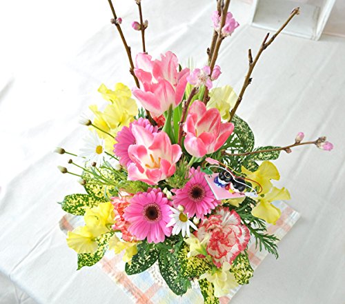 - 【花開く未来のレディへ】ちっちゃな子供でも知っているチューリップの花。 一年のなかでも限られた期間だけのこのお花が、雛祭りの時期に重なっているって、素敵な偶然ですよね。桃のお花やスイートピー、マーガレットなど春らしさ満点のアレンジになりました。ひな飾りピックをお付けしてお届けします。(ひなまつりピックのデザインは当店おまかせとなります)