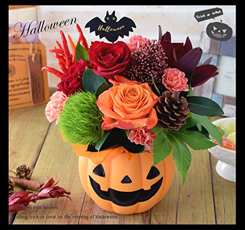 - 【サイズ】約φ18×高さ20cm(※植物につき高さは目安になります)【内容】バラ/カーネーション/SPカーネーション/サファリサン/実物/シキミア/など季節のお花各種 *入荷状況により品種や花色が異なる場合がございます。ご了承くださいませ。 ハロウィンポット(2色アソート:色は当店におまかせください)/ハロウィンピック(ピックについてデザインは当店におまかせください) *資材につきましては、入荷状況により一部変更となる場合がございます。 予めご了承くださいませ。(背景の小物は含まれません。ご了承くださいませ。)ご希望のお客様にメッセージカード/お取扱説明書/ 品質保証付ショップカード /ご希望のお客様には手提げバッグ *入荷状況により資材が変わる場合がございます。メッセージをご希望のお客様はお客様ご記入欄にメッセージをお書き添えください。