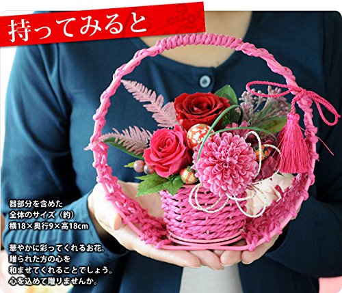 - 【サイズ】器を含むアレンジメント全体:(約)横18×奥行き9×高さ18cm【サイズ】器を含むアレンジメント全体:(約)横18×奥行き9×高さ18cm【内容】プリザーブドローズ・アジサイ・グリーン/アーティフィシャルフラワー・グリーン・ピックなど/ベリーピック/和風ピック/和風リボン/和風バスケット/お取り扱い説明書/品質保証付ショップカード