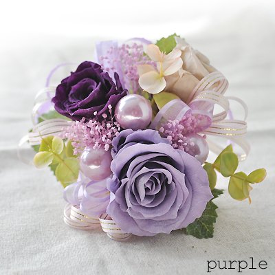 花由 プリザーブドフラワー の コサージュ 紫系(パープル)【結婚式 フォーマル ブリザードフラワー 卒業式 入学式】