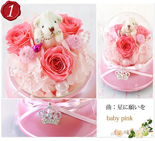 花由 プリザーブドフラワー オルゴールドーム Baby pink(テディベアN)