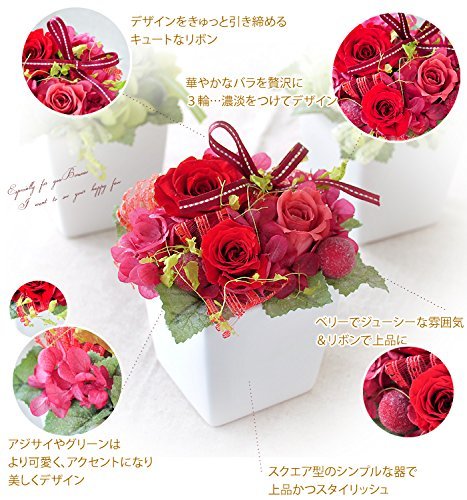 - こちらの「パレット」は飾りやすくて上品なアレンジが人気です。誕生石をモチーフに、花びらには輝くスワロフスキーをあしらいました。クリアケースがホコリから守ってくれるので、お掃除はケースを拭くだけ簡単&キレイ お誕生日やご結婚祝い、歓送迎会や母の日、お見舞い等々、様々な機会にぴったりです。プリザーブドフラワーは生花を特殊加工し、美しさはそのままに、より鮮やかな発色を楽しめる枯れないお花です。半年から長ければ1年以上お楽しみいただけます。フラワーギフトの中でも、人気のお花です。プリザーブドフラワーは生のお花と同じで鮮度が大事です。当店では新鮮なプリザーブドフラワーを使ってアレンジしていますので、美しく鮮やかな発色を長く楽しんでいただけます。
