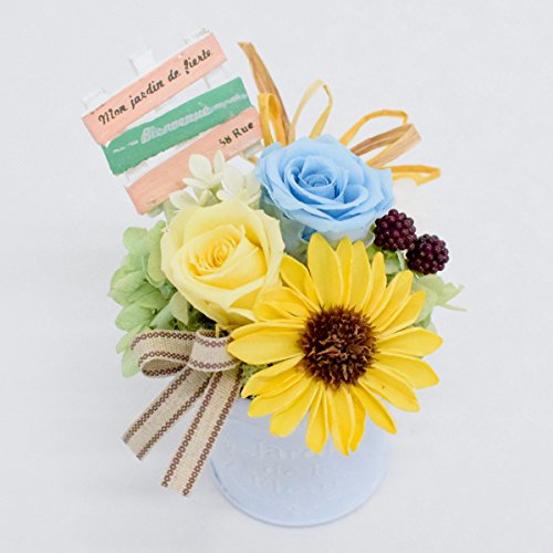 - 【内容】プリザーブドローズ/プリザーブドアジサイ/ソラフラワー ヒマワリ/フェイクグリーン/ブリキポット/クリアケース/リボン/お取り扱い説明書/ご希望の方にメッセージカード、専用手提げ袋