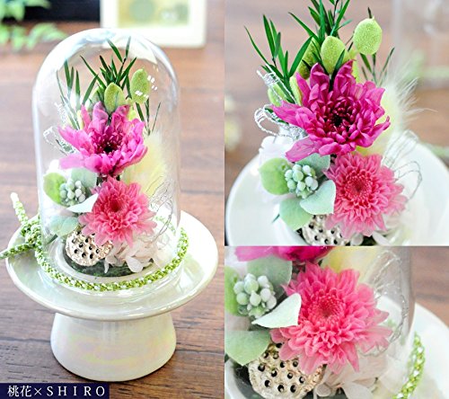 花由 プリザーブドフラワー お供え用ガラスドーム Sサイズ 桃花 X SHIRO ブリザードフラワー 仏花 お供え 仏壇 お彼岸 花