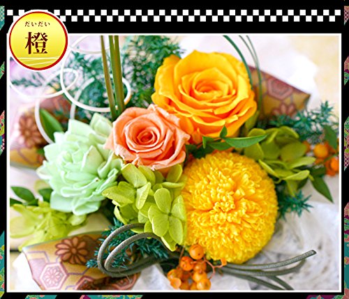 花由 プリザーブドフラワー 和風アレンジ「華月-kagetsu」橙(だいだい)フラワーアレンジメント アレンジメントフラワー ブリザードフラワー 還暦祝い 誕生日プレゼント 花 お祝い