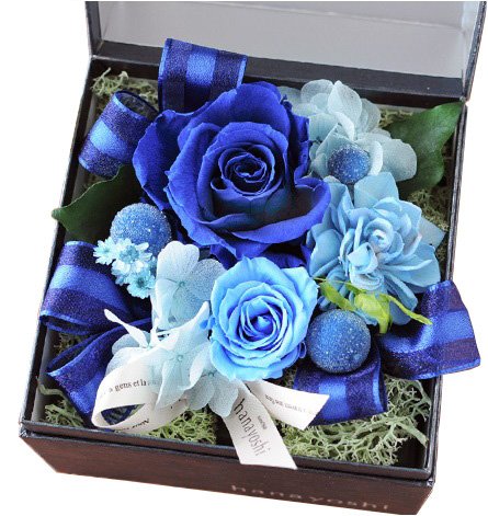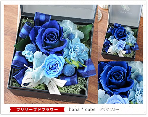 花由 ボックスフラワー hana cube 黒箱 【プリザーブドフラワー】 ブルー フラワーギフト ブリザードフラワー 誕生日プレゼント 女性 結婚祝い お祝い 花