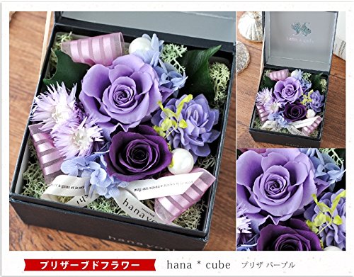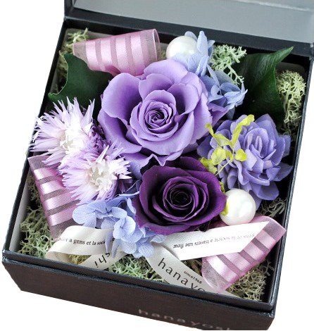 花由 ボックスフラワー hana cube 黒箱 【プリザーブドフラワー】 パープル