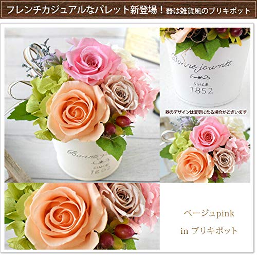 花由 プリザーブドフラワー パレット ベージュpink ブリキpot