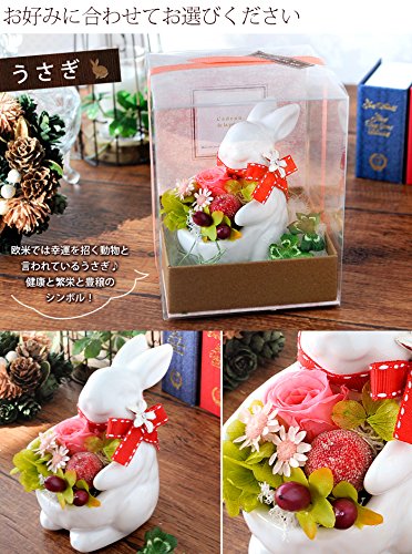 - 【サイズ】本体うさぎ:約W10xD6xH10cm クリアケースサイズ:約10.5x10.5xH13cm 【内容】プリザーブドローズ/プリザーブドアジサイ/アートフラワー・グリーンなど/ アニマル型の陶器/ クリアケース/リボン/ご希望のお客様にはメッセージカード/お取り扱い説明書/品質保証付ショップカード *花材・資材の一部が変更になる場合が ございます。