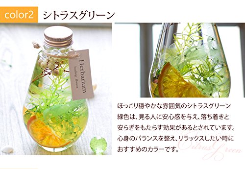 - 瓶の中に閉じ込められた花がキラキラとして、とっても綺麗なハーバリウム!みずみずしい状態でお花を観賞できる新感覚のインテリアです。お手入れいらずで、3ヶ月から1年ほど植物が美しいまま保存され、飾ればお部屋がおしゃれな空間に!電球のような見た目!ラウンドタイプのシトラスグリーンです。ほっこりと穏やかな雰囲気が印象的です。緑色は見る人に安心感を与え、リラックス効果があるとされています。ご自宅用としてはもちろん、プレゼントとしてもおすすめです。
