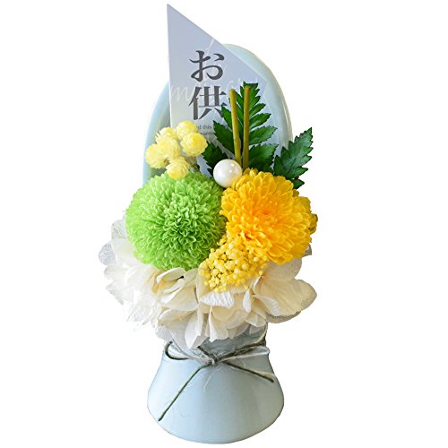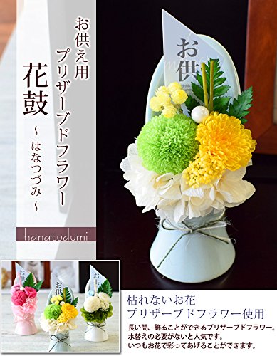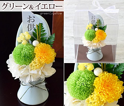花由 お供え用 プリザーブドフラワー 仏花 「花鼓~はなつづみ~」グリーン&イエロー