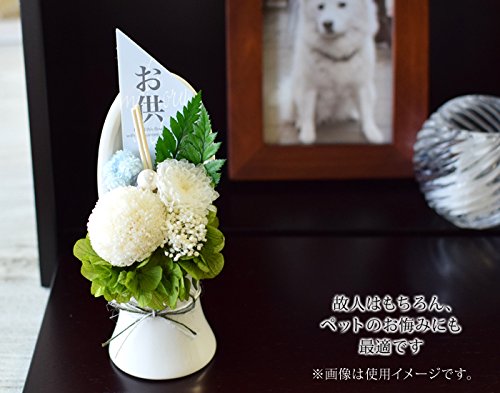 - 暑い時期にも贈れるお供え用のプリザーブドフラワーです。コンパクトですが、華やかなお供えアレンジメントです。縦長のデザインなので、お線香やお供え物など、いろいろと物が多いお仏壇にもすぐに飾ることができます。高さがあるので、お花の美しさを感じられるデザインです。
