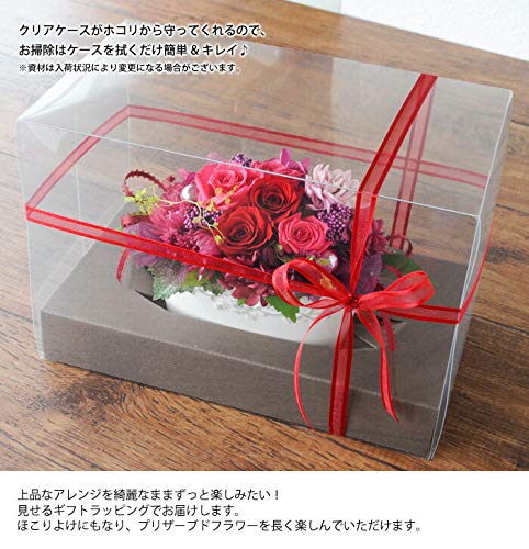 見せるギフトラッピングなので、ほこりよけにもなり、プリザーブドフラワーを長くお楽しみいただけます。