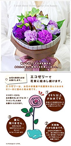 - プレゼントにぴったり!今が旬の季節の新鮮な生花でお作りする花束です。自立する花瓶要らずの花束ギフトなので、もらった人もうれしい一品です。エコゼリーで吸水し続けるから水替えも不要で花持ち抜群です。ご希望の方には、持ち運びに便利な袋付でお届けします。(ギフト設定よりご選択ください)