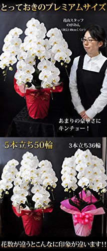 - 最高品質の胡蝶蘭(コチョウラン) 大輪5本立 50輪以上 産地直送 数々の受賞歴を誇るヒカル・オーキッドさんの生産地からお客様に直接お届けするため、新鮮 安心。より新鮮で鑑賞期間が長い胡蝶蘭をお贈りすることができます。<高さ80~90cm位 花数50輪以上>とっておきのプレミアムサイズ。あまりの豪華さに驚きです。 ヒカル・オーキッドさんではすべての胡蝶蘭にスポンジを添えており、花の向きが綺麗に揃い見ごたえがよりでます。さらに配送の際もスポンジがあることにより、配送中のお花への負担が軽減されます。