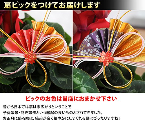 - すっきりとした爽やかな香りと冬中鮮やかな花を楽しめるシクラメンは、冬のフラワーギフトの定番アイテム。バスケット入りで冬の室内を華やかに彩ります。お正月にぴったりな縁起の良い扇ピックをつけてお届けします(ピックのお色は当店におまかせください)。