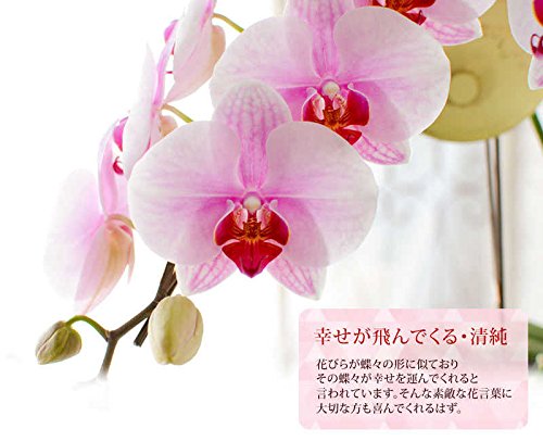 - 【内容】●ミディ胡蝶蘭 サクラ姫 ※写真は一例になり、花色・花付きなどは植物により個体差がございます。ご了承くださいませ。 ※陶器鉢に植え込んでお届けします(鉢穴あり) ラッピング/リボン/お取扱い説明書/ご希望の方にメッセージカード・名札/品質保証付きショップカード *入荷状況により資材が変わる場合がございます 【ギフトオプション】ご購入時にギフト設定(無料)を行っていただきますと、ギフトメッセージ/ギフトラッピング(どちらも無料)のご利用が可能です。●名札・メッセージカードにつきましては、別途、支柱につけたものを同梱させていただきます。ご希望の方はギフト設定画面でご記入ください。●金額のわかる明細書・納品書を同封いたしません。*北海道・沖縄・一部離島へはお届けしておりません。あらかじめご了承ください。