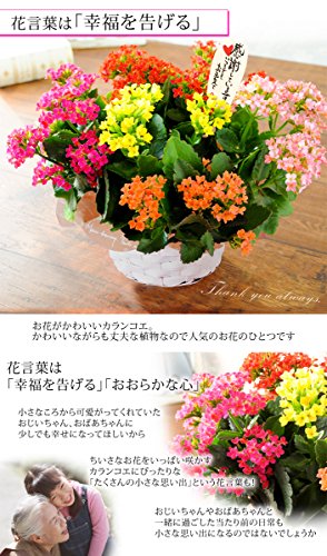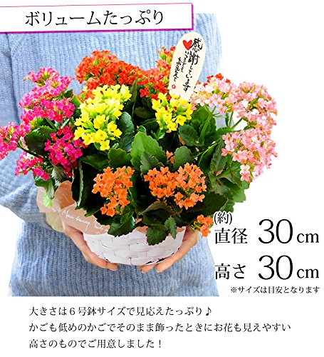- 【全体サイズ】 約直径30cm×高さ30cm *植物につきサイズは目安になります。【内容】5色植えカランコエ /バスケット(デザインは当店にお任せ下さい)/敬老の日ピック/ラッピング材/当店オリジナル敬老の日カード/取扱説明書/品質保証付きショップカード *入荷状況により、花材・花色・品種・資材は変更になる場合がございます。*北海道・沖縄県へのお届けは追加送料800円が別途かかります。予めご了承くださいませ。