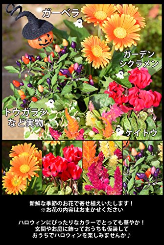 - 【サイズ】最大 約:□21×高さ35~40cm (目安になります)【内容】●ハロウィン福袋*寄せ植え:1個 ガーベラ/ ケイトウ/トウガラシなど実物/ガーデンシクラメン/フィカス・プミラなど季節のお花とグリーン ※花色は当店にお任せください。バランスを見て植え込みます。ハロウィンピック(デザインはおまかせ下さい) 素焼きデザイン鉢(デザインが変更になる場合がございます。ご了承くださいませ)/ラッピング/リボン/レシピ/ジャック・オ・ランタンのレシピ ミニカボチャ *花材・資材につきましては、入荷状況により一部変更となる場合がございます。植物につき、開花状況・育成状況は個体差があります。予めご了承くださいませ。 ご希望のお客様にメッセージカード/お取扱説明書/ 品質保証付ショップカード