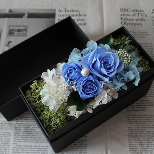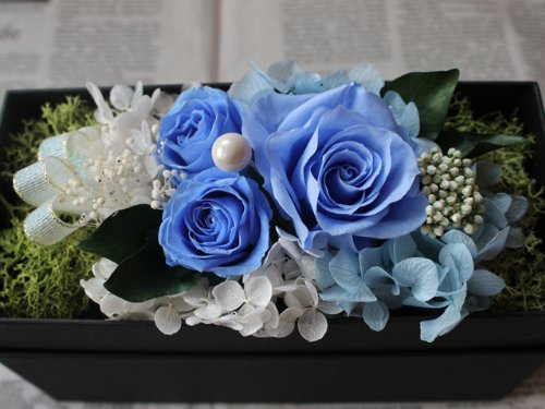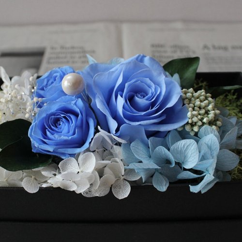 fleurcocoオリジナル 枯れないお花のサプライズフラワーボックス :ブルー 【 フラワーギフト 誕生日プレゼント 結婚祝い 記念日 彼女 お祝 】