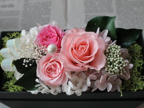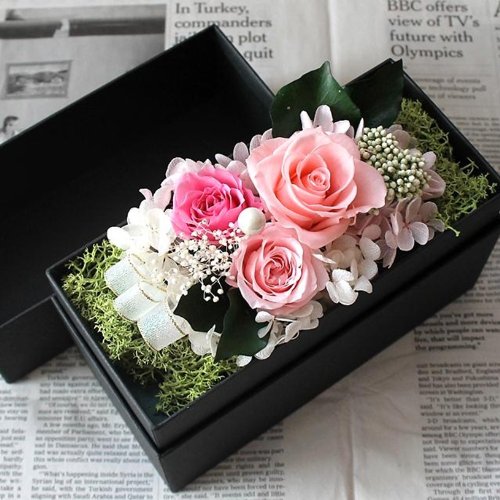 ふたを開けてびっくり!! 華やかな枯れないお花のボックスプリザーブドフラワー♪ サプライズの贈り物にぴったりのボックスフラワーギフトです♪