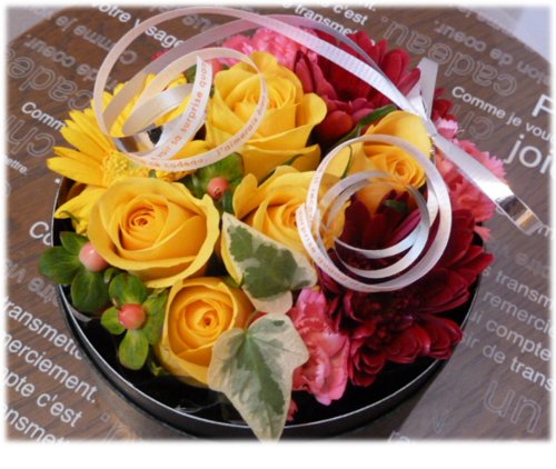 フラワーアレンジ fleurcocoオリジナル 生花 フラワーボックス イエロー