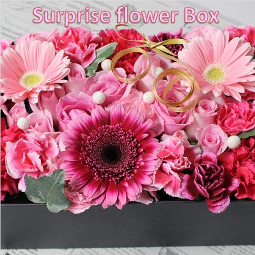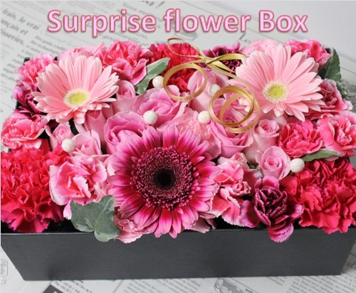 フラワーアレンジメント fleurcocoオリジナル 生花 フラワーボックス ピンク 幅25㎝