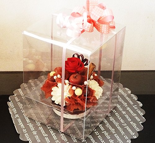 fleurcocoオリジナル 枯れないお花のプチフラワーケーキ ストロベリーチョコレートSフラワーケーキ STRAWBERRY CHOCOLATE Sクリアーケースイン レッド